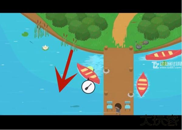 1、玩家走到湖边,将小船推动至湖水颜色比较深的地方。