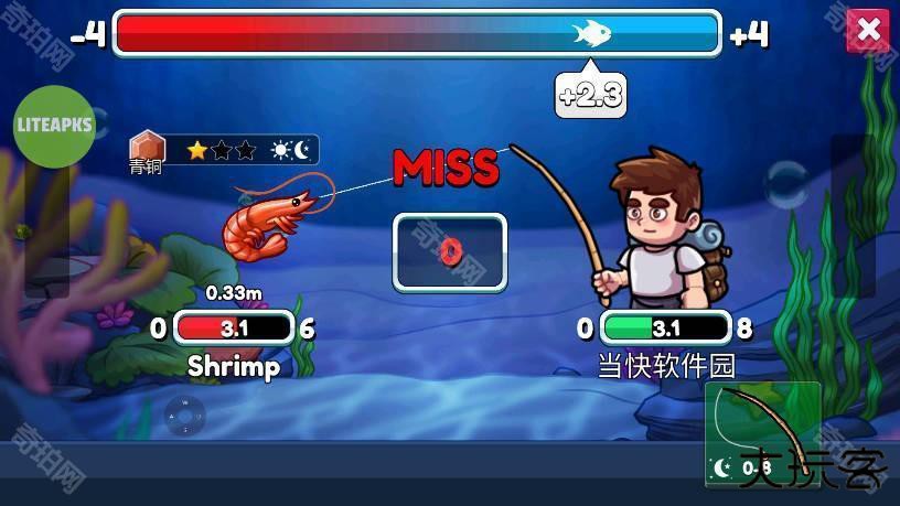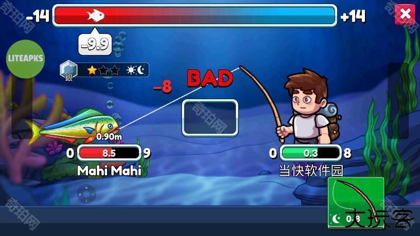 2、掌握遛鱼的技巧非常重要。在屏幕顶部,你会看到一个鱼的对抗计量条,若计量条向左偏移过多,就会导致失败;而当它移向右侧时,则意味着你成功了,鱼会一直拉动这个计量条。