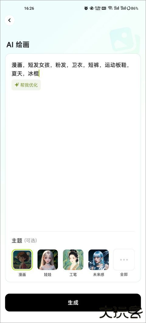 2、输入想要的图片风格,越详细的描述,生成的效果会更好。