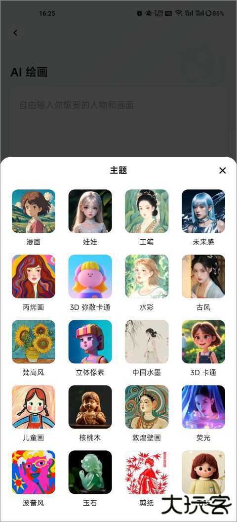 1、星绘Ai软件在主页选择AI绘画功能,挑选想要的画风主题。