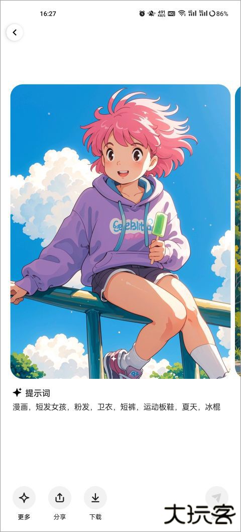 3、左右滑动可以查看不同的生成选项,选择最满意的结果。也可以自由保存或分享生成结果。