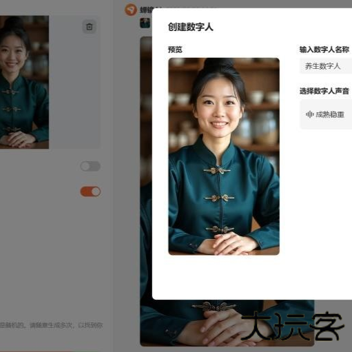 5、点击【创建数字人】,命名并选择或上传音色,保存。