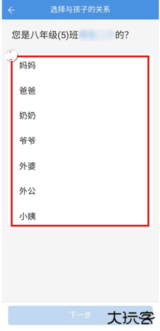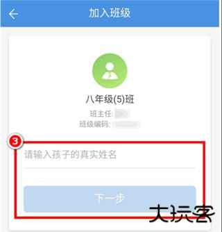 第三步:核对孩子的班级和班主任后,输入孩子的姓名;