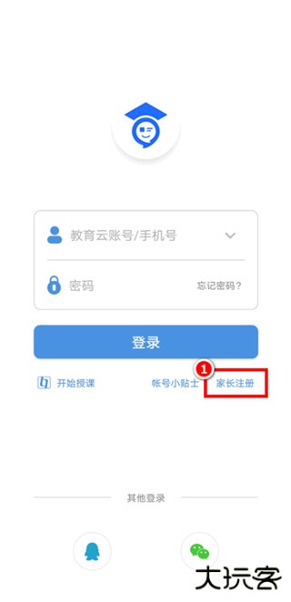 第一步:在APP登录页点击“家长注册”