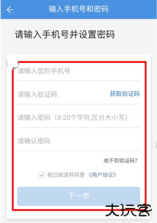第五步:输入手机号码、验证码,设置密码;