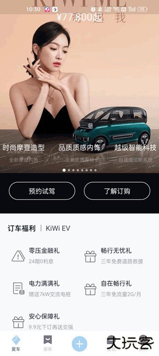 2、点开爱车,这里可以VR看车了解车辆的配置信息以及预约试驾;