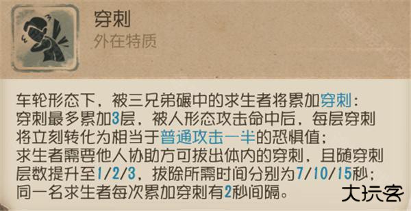 ⑥ 【穿刺之轮】可以隔着薄墙命中求生者,打断其交互并累加1层穿刺。