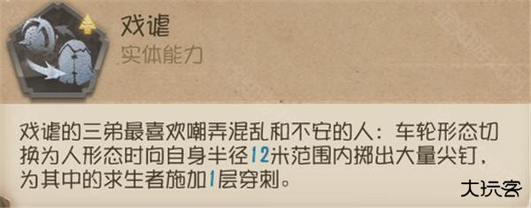 ② 在开启二阶技能后,可以先用轮形态碾中求生者,之后立即切换人形态。【戏谑】会为附近求生者施加1层穿刺,这样能快速累加2层穿刺,再使用普攻将其击倒。