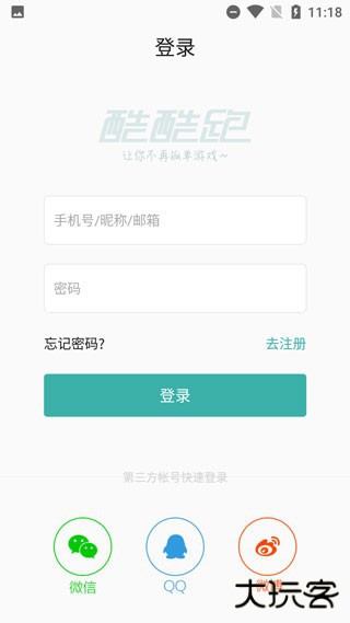 1、下载打开酷酷跑之后,点击右侧的【我】,会直接进入登录/注册界面;