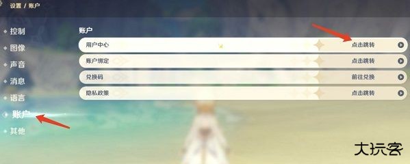 2、依次点击“账户-用户中心-点击跳转”