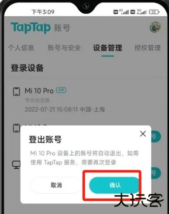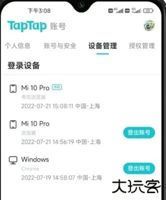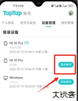 3、点击想要删除的设备右侧的登出账号