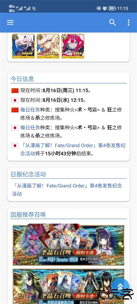 5、FGO日服用户能在应用内获取活动时间与版本变化,提升整体游戏体验。
