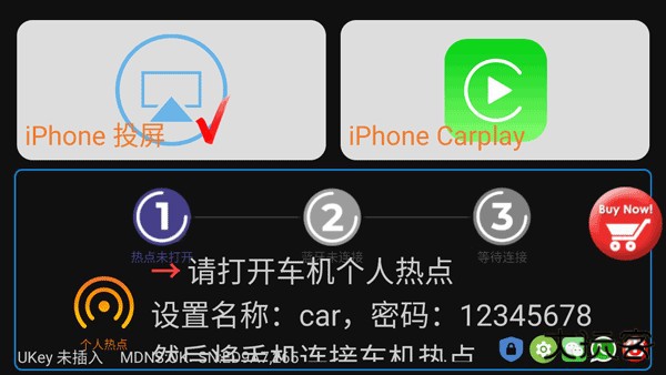1、打开车机的个人热点,将热点名称设置为car,密码设置为12345678,然后iPhone手机连接这个热点