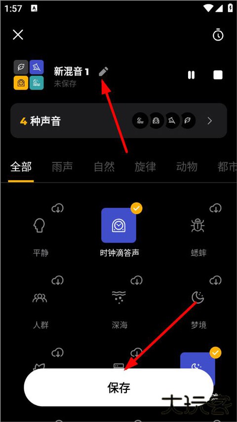3.进入到混音创建界面,可添加声音到新混音中,左上方可为混音命名,点击保存即可