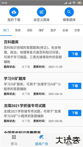 3、点击题库广场,可以查看各类型题目题库,可根据自己需求下载;
