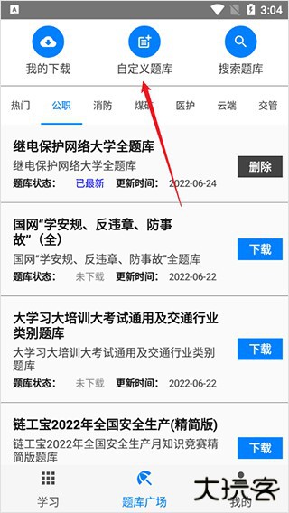 1、在本站下载并安装快搜搜题题库制作助手app,点击学习一栏,可以查看软件各项功能;