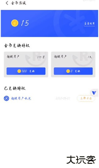3、根据自己的金币数量,兑换不同天数的超级权限(就是root权限),兑换之后就会有已兑换特权,点击立即开启即可