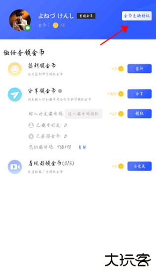 2、登录完成后点击右上角的金币兑换特权