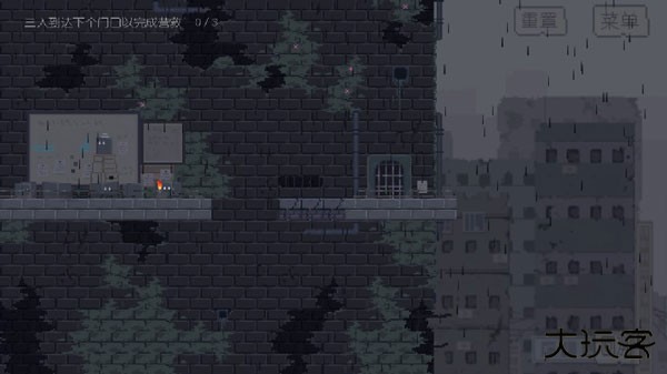 3、游戏画面采用了复古的像素点阵风格,色彩层次简约。整个场景沉浸在一片深沉的灰黑色调中,营造出被时间遗弃和灾难侵袭的荒废都市景象。灰黑色侵蚀的世界,加上铅灰色的穹顶,传递出压抑又迷人的末日氛围。