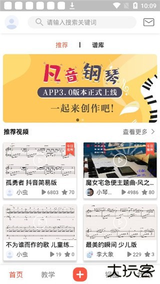 1、打开在本站下载的软件,进入首页,我们可以看到有非常丰富的的钢琴教学视频与谱库可以任由用户选择;