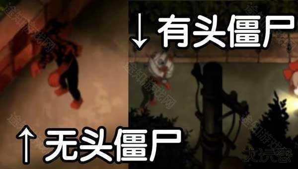 2、有头僵尸 按照既定路线移动,一般不会追击,奔跑会引起注意,追击速度快,在追击时保持移动即可躲避(攻击发出破空声(类似狗叫声