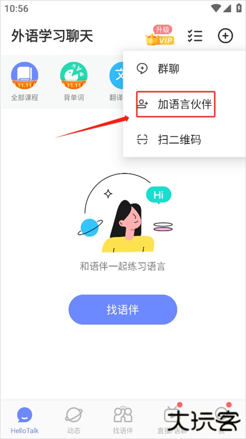 2、点击加语言伙伴。