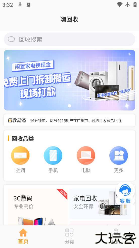 嗨回收app官方版下载安装可以在线预约回收师傅,用户只需要把家里的废弃的加点废品手机打包,等到预约的回收师傅上门是直接交给他即可,相当方便快捷。省去了用户到处找不到回收站的麻烦,需要的用户可以下载体验。