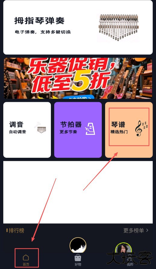 2、成功进入软件主界面后,在界面中找到标注琴谱的选项,点击这个选项进入琴谱专区。