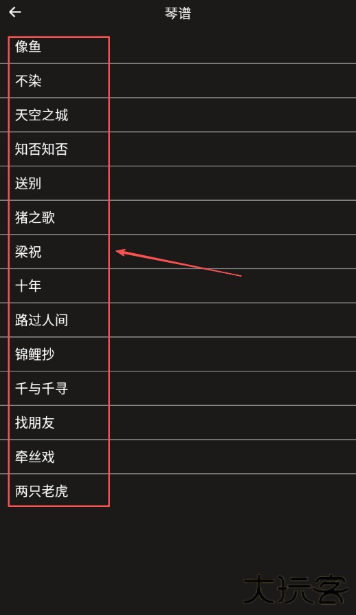 3、在琴谱专区里能看到各种歌曲的琴谱,从中挑选一首自己想查看的歌曲琴谱并点击进入。