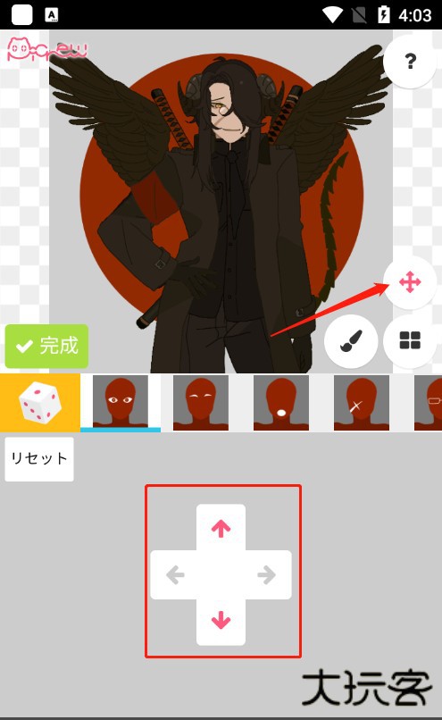 3、点击这个按钮,还可以对部位进行移动,比如说眼睛,点击下方的上下左右箭头即可进行移动;
