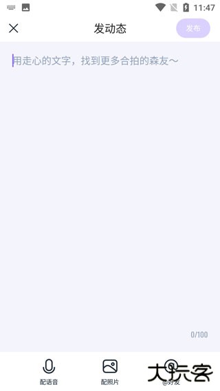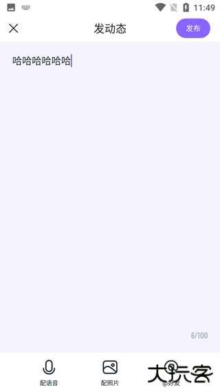 2、填写你要发的文字,你可以自由的进行配音、配图片、以及@好友