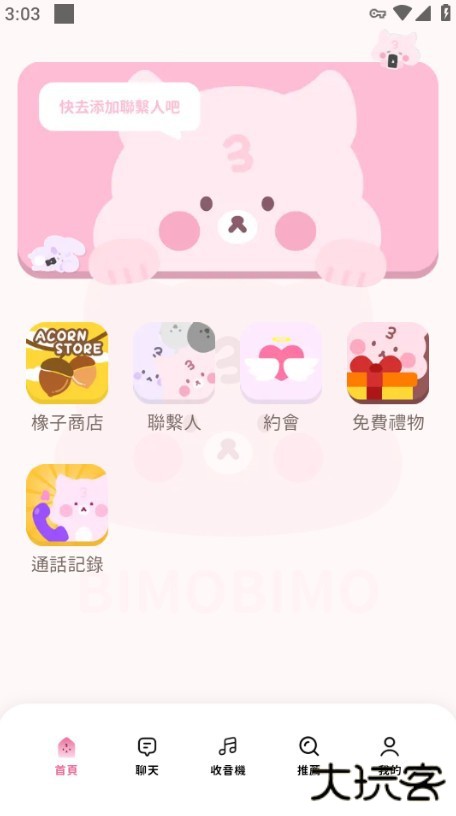 1、打开bimobimo中文版,用户们点击“快去添加联系人”。