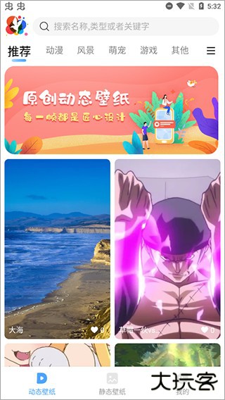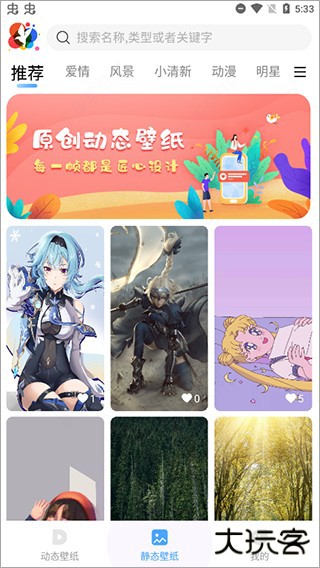 2、进入主界面,壁纸分为动态和静态两大类。