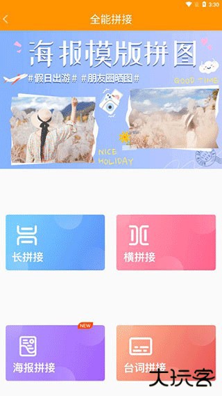 2、在【全能拼接】界面,有【长拼接】、【横拼接】、【海报拼接】、【台词拼接】选项,可以选择【海报拼接】。