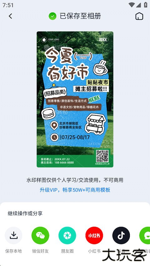 4、已保存至相册,创客射击APP也支持分享到微信、朋友圈、小红书以及抖音等各大平台。