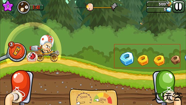 6、在行驶过程中收集散落在路上的螺母;这些螺母可用于解锁更高级的赛车或角色,也可投入资源进一步强化车辆性能;