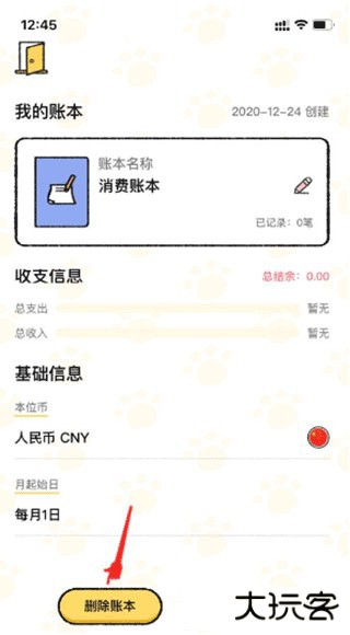 4、进入账本详情页面里,点击“删除账本”,最后再点击“确定删除”,这样就删除成功了。
