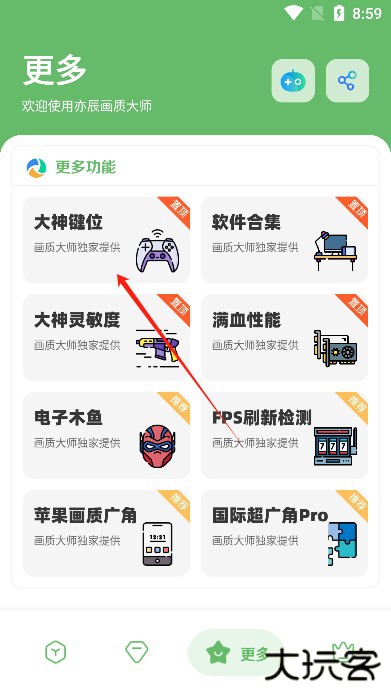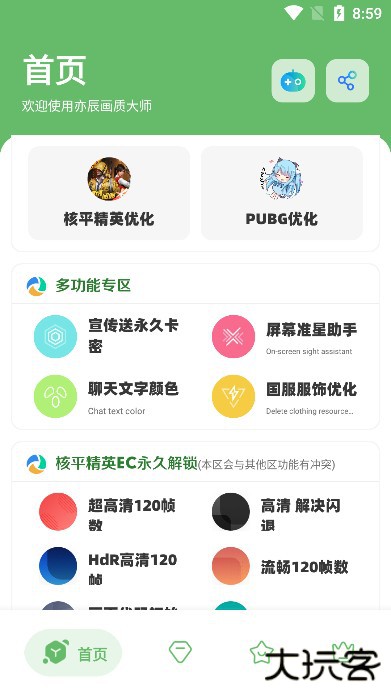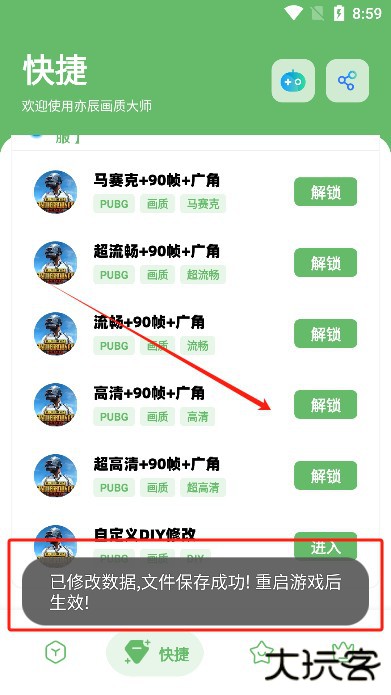 3、点击第二个栏目,选择自己想要使用的画质助手进行解锁