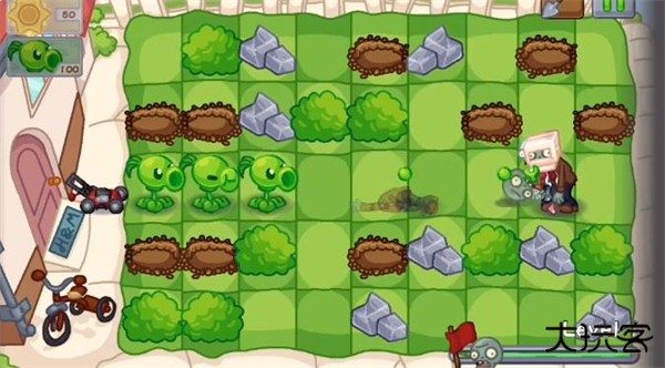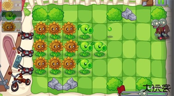 4、种下植物后这些植物会自动攻击进入的僵尸敌人。