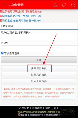 2、点击“免费注册会员”进行会员的注册;