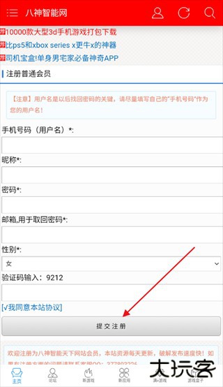 3、输入信息后“提交注册”;