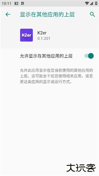 2、开启悬浮窗小部件,让k2er允许显示在其他应用的上层