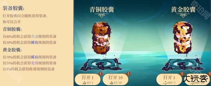 青铜胶囊和黄金胶囊获得的装备品级相差较大