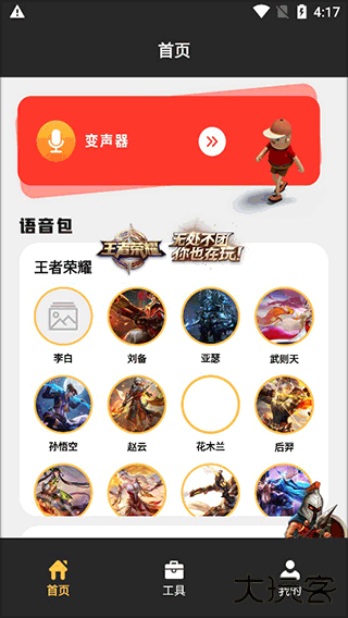 首先我们进入app的首页,在首页的界面中找到变声器功能,点击进入。