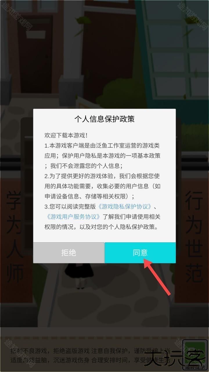 2、进入游戏后,玩家点击【同意】即可进入存档阶段