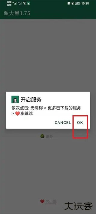 1、打开软件在软件首页中打开按钮,然后就会出现弹窗,点击弹窗中的【OK】进入到手机无障碍设置功能中;