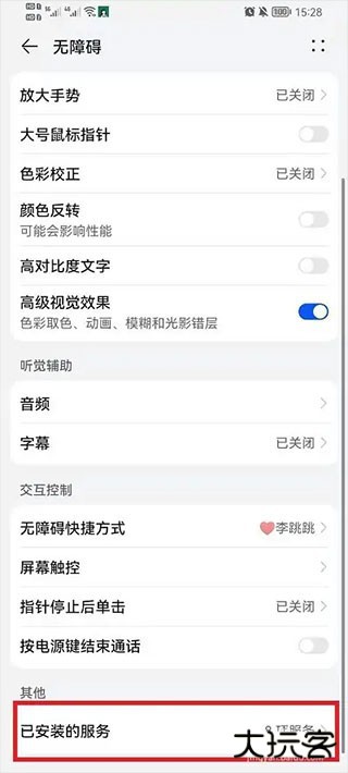 2、然后打开在无障碍功能中最下方的功能【已安装的应用】进入到其中;
