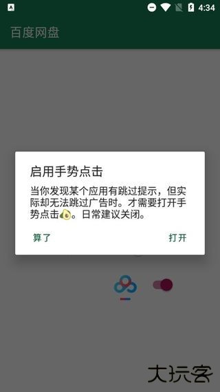 4、在其界面中,只需要打开功能按钮,就可以跳过广告,但是此软件需要一直开启才能一直跳过广告。