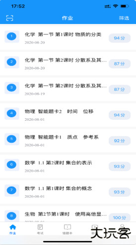 3、筛选与查看成绩:进入“作业”或“作业管理”页面,按学段(如小学、初中)、学科(如数学)和教材版本筛选,点击具体考试名称查看分数、错题分析及教师评语。