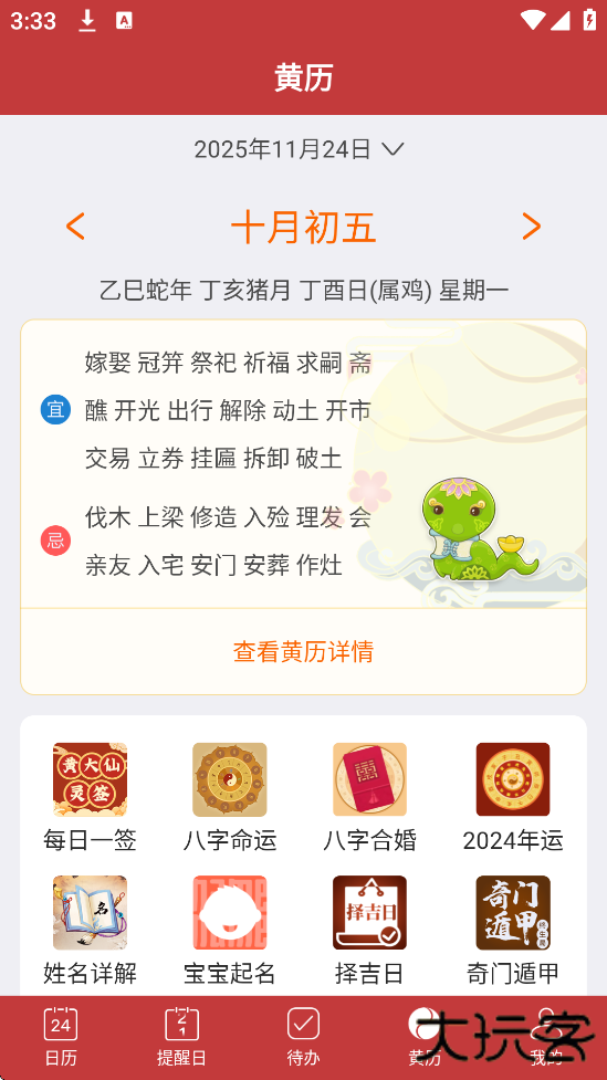 1、基础服务:提供万年历、节假日查询、吉日查询(如婚姻/搬迁/出行)、每日一卦、罗盘方位、大屏时间展示、数字转换(大写金额)、退休年龄计算器等。
